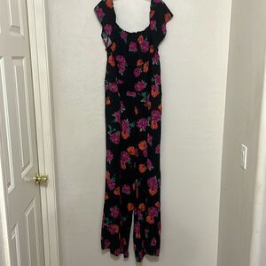 Torrid Black Floral Off Shoulder Design Contemporary Boho Feminine Jumpsuit. Size 2X, no zipper or button closures, has pockets.