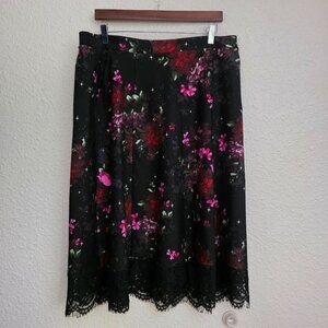 Torrid Black Floral Premium Ponte Lace Midi Skirt Women's Plus Size 1X NWT
