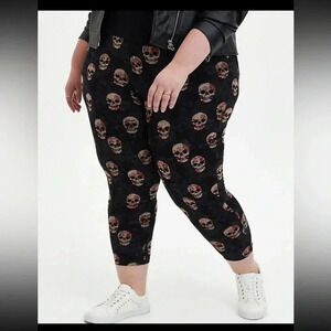 Torrid Plus Black Floral Skull Print Crop Leggings