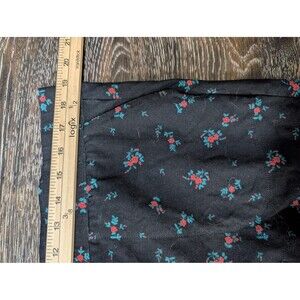 Torrid black pants with a red and teal floral print. These are skinny jeggings with a wide, comfortable pull-on waistband, two front pockets, and two back pockets.
