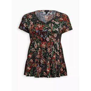 Torrid Black Floral Textured Stretch Rayon Babydoll