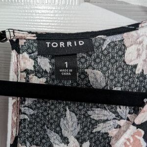 Torrid Black Floral Textured Woven With Eyelet Trim Cold Shoulder Top Size 1