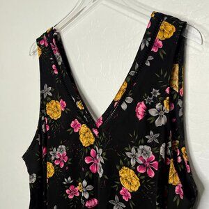 Torrid Black Floral V-Neck Georgete Ladder Trim Chiffon Blouse Tank
