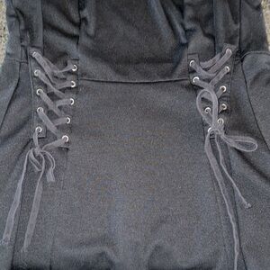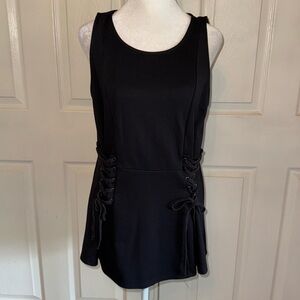 Torrid black front lace up fit and flare tank top. Size 00 = US 10. 17” armpit to armpit laid flat. 26” shoulder seam to hem. Very good pre owned condition