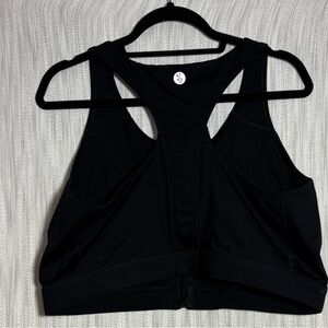 Sleek black sports bra with front zipper. Ideal for active wear. 1559