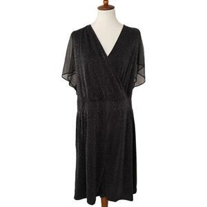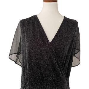 Torrid Black Glitter Lurex Flutter Sleeve Surplice Wrap Romper Plus Size 6