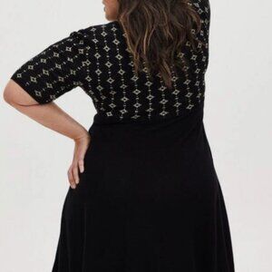 Torrid Black & Gold Intarsia Sweater Skater Dress Plus Size 6X