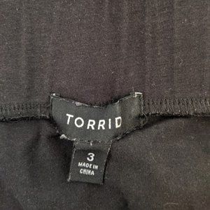 Torrid Size 3. Cotton with spandex. Elastic waistband. Super cute!! Hike it up for a night out or pull it down a little lower with some tights to wear in the office.