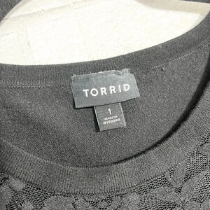 Torrid Black Knit Short Sleeve Shirt with Front Lace Detail Women's Size 1X