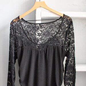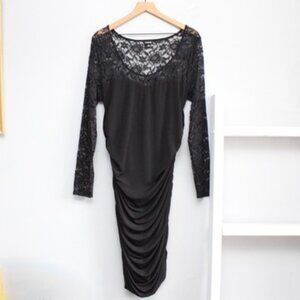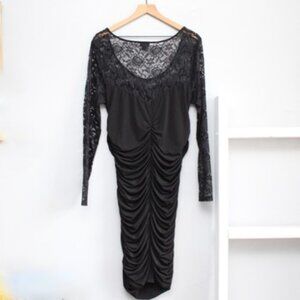 Torrid Black Lace Illusion Shirred Sheath Long Sleeve Stretch Dress Size 1/ 1X