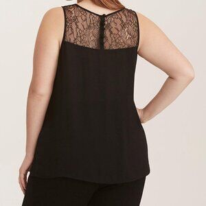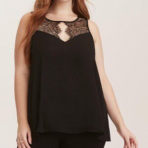 Torrid Black Lace Inset Woven Georgette Tank Top 2x