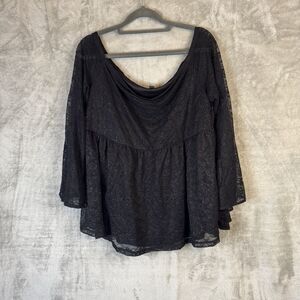 Torrid Black Lace Off Shoulder Bell Sleeve Top Size 0 Goth Witchy Boho