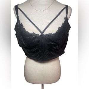 New with tag Torrid black lace and satin bralette, size 3 (3X/ US 22–24). Features strappy front detail, sheer lace and mesh cups, satin band, and underwire support. From Torrid’s #FeelTheFit collection — stylish, comfortable, and flattering.