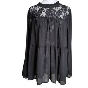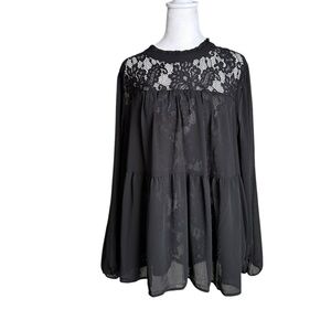 Torrid Black Lace With Chiffon Overlay Blouse size 2