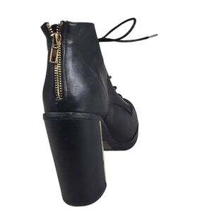 • Features: Lace-up front, chunky heel with gold inner accent, back zipper for easy wear