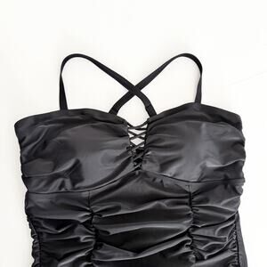 Torrid Size 3X Black Lattice Front Ruched Slimming Wireless One Piece Swimsuit