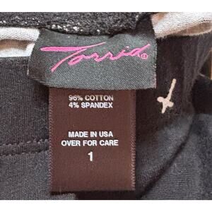 The Torrid Black Leggings with White Crosses in size 1X are stylish and versatile pieces perfect for various occasions such as travel, activewear, and casual wear. Made from a comfortable cotton blend fabric with a knit texture, these leggings feature a mid-rise waist and an elastic waistband for a secure fit. The black color with white crosses adds a trendy touch to the basic style, while the features like comfort and stretch make them suitable for activities like walking and driving. Ideal for the fall, winter, and spring seasons, these leggings from the United States are a must-have for plus-size women looking for both style and functionality. Waist 31”. Inseam 29”.