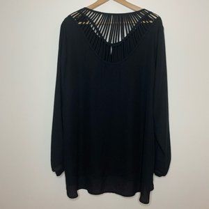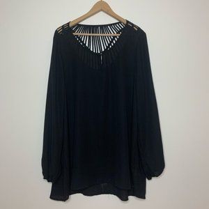 Torrid | Black Long Sleeve Flowy Blouse | Cut Out Back | Plus Size | 0