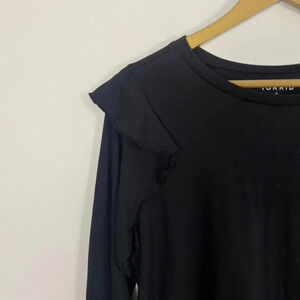 Black long sleeve top Ruffle detail Excellent preowned condition Torrid size 0