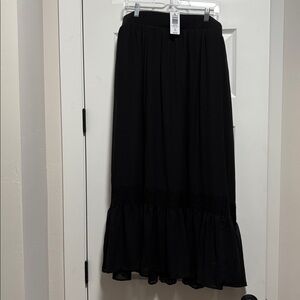 Stylish black maxi skirt with elegant pleats and lace detail. Side pockets. Ideal for versatile wear. New with tags. Dog friendly home.