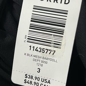 New with tags Torrid Black Mesh Babydoll Tank Top Goth Whimsigoth Fairy Goth Size 3