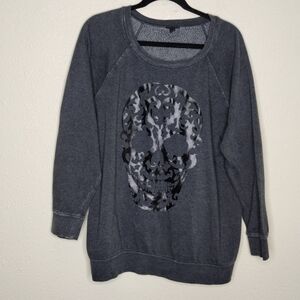 Torrid Black Mineral Wash Skull Raglan Fleece Sweatshirt Women's Plus Size 1X