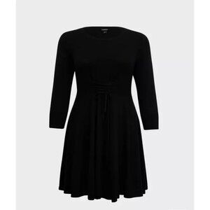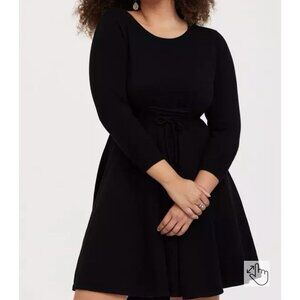 Torrid Black Mini Sweater Long Sleeve Lace Up Fit N Flare Dress 2X 18-20 NWT