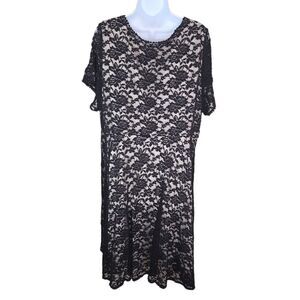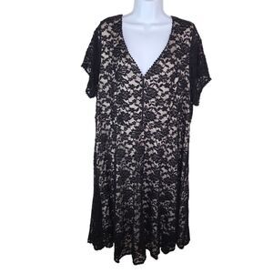 Torrid Black Nude Lace Skater V-Neck Dress Short Sleeve Size 3 3x