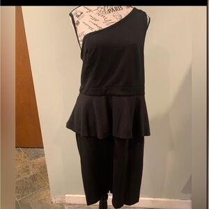 Torrid Black One-Shoulder Peplum Evening Cocktail Midi Dress Women’s Size 16