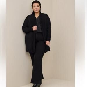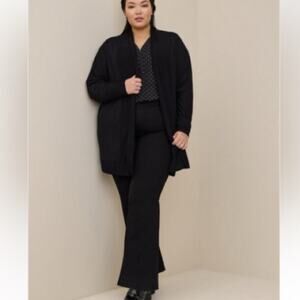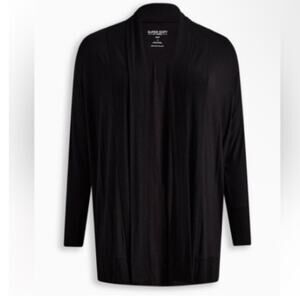 Chic black cardigan with open front. Soft and comfortable fabric.