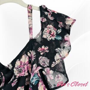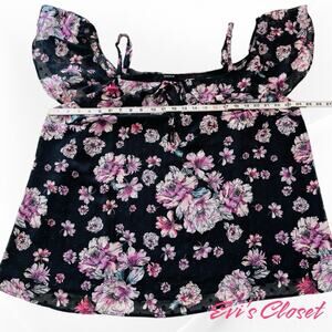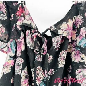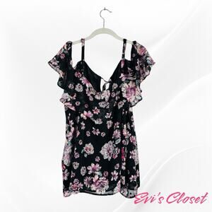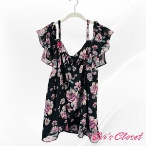 Torrid Black Pink Floral Chiffon Sz 18/20 Cold Shoulder Short Sleeve Top