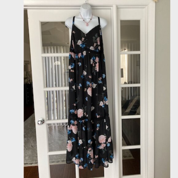 Torrid Black Pink Floral Slip Strap Ruffled Hem Maxi Dress 3