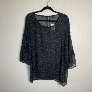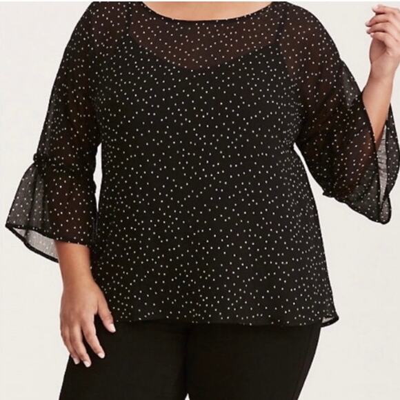 Torrid Black Polka Dot Chiffon Blouse Top Long Sleeve 2X NWT 10927419