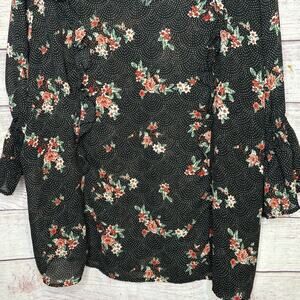 Torrid Black Polka Dot Floral Ruffle Semi Sheer Blouse Top Size 3