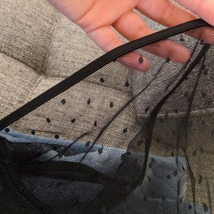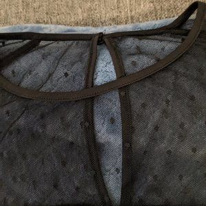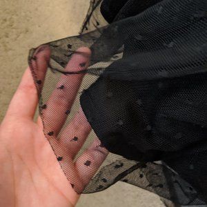 Torrid Size 3. Only worn once. Can definitely be worn up or down based on your style. A layer of polka dot lace over a layer of black polyester. Sleeves and chest hems are lined in black fabric.