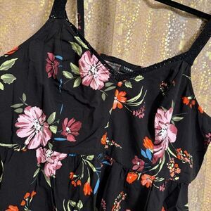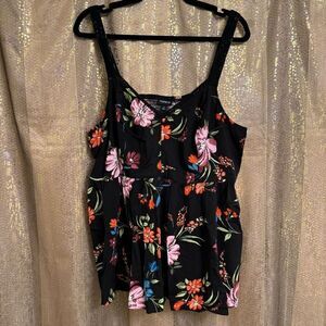 Torrid Black Red Blue Purple Floral Crochet Strap Peplum Challis Tank Top 1X