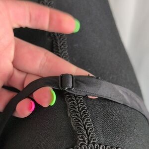 This black camisole from Torrid features a relaxed, flowing fit with a subtle sweetheart neckline and thin spaghetti straps. The silky fabric adds a touch of elegance, making it perfect for layering or wearing on its own. A small bow detail at the neckline enhances its feminine charm.