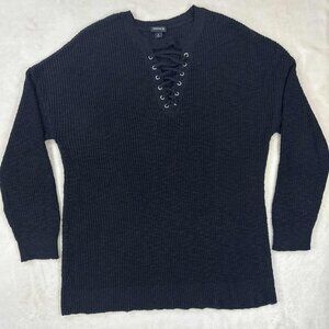 Torrid Black Ribbed Lace-Up Knit Sweater 3X - (Fall Collection)