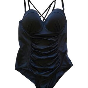 Torrid Black Ruched Push-Up Demi One Piece Swimsuit sz 6