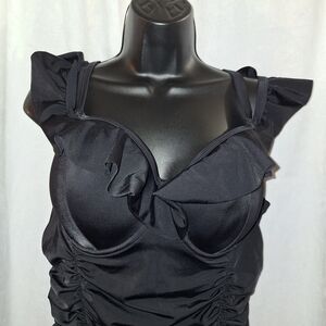 Torrid Black Ruched Ruffled Bodysuit