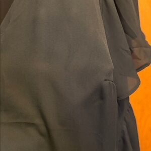 Chic black blouse with ruffled details. Perfect for versatile styling. Three ties in the front. Semi see through. Light weight