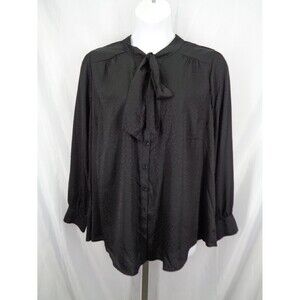 Torrid Black Satin Jacquard Tie Neck Button Blouse Top Plus Size 2 (18/20) 2X