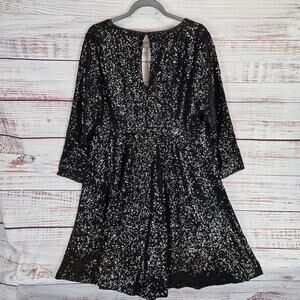 Torrid Black Sequined Dress 1X Fit & Flare Pleated Flowy Ethereal Whimsigoth NWT