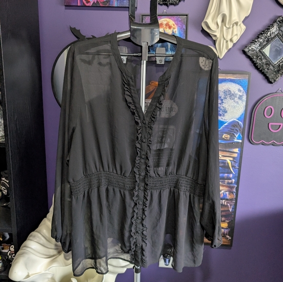 Torrid Black Sheer Ruffle Blouse