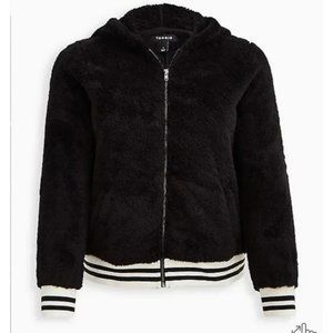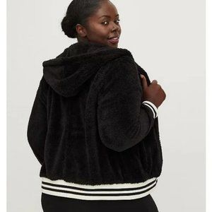 Torrid Black Sherpa Hooded Bomber Fuzzy Zip Jacket