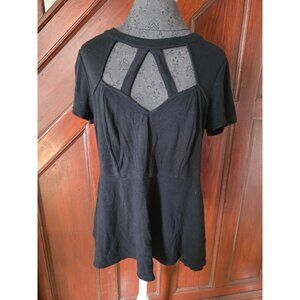 Torrid Black Short Sleeve Peplum Top With Cut-Out Neckline Large