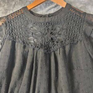 Torrid Black Sleeveless Crochet Yoke SwissDot Top 00 Dark Elegance Feminine Edge