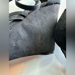 Torrid Black Strappy Wedge Heels, Size 11, Faux Suede, Gently Used
