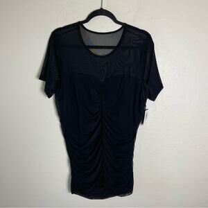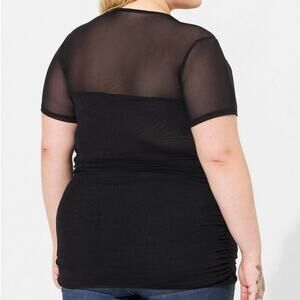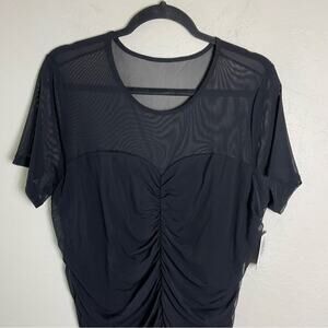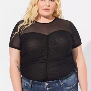 Torrid Black Stretch Mesh Crew Neck Ruched Top 2X NWT 40370093
