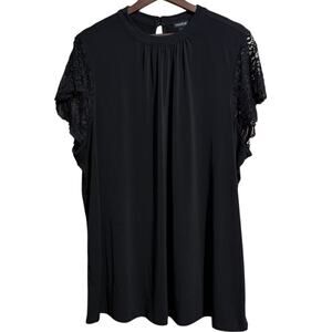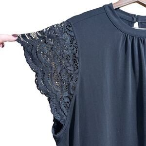 Torrid Black Studio Knit Lace Sleeve stretchy Top Women's Torrid 4 or 4X